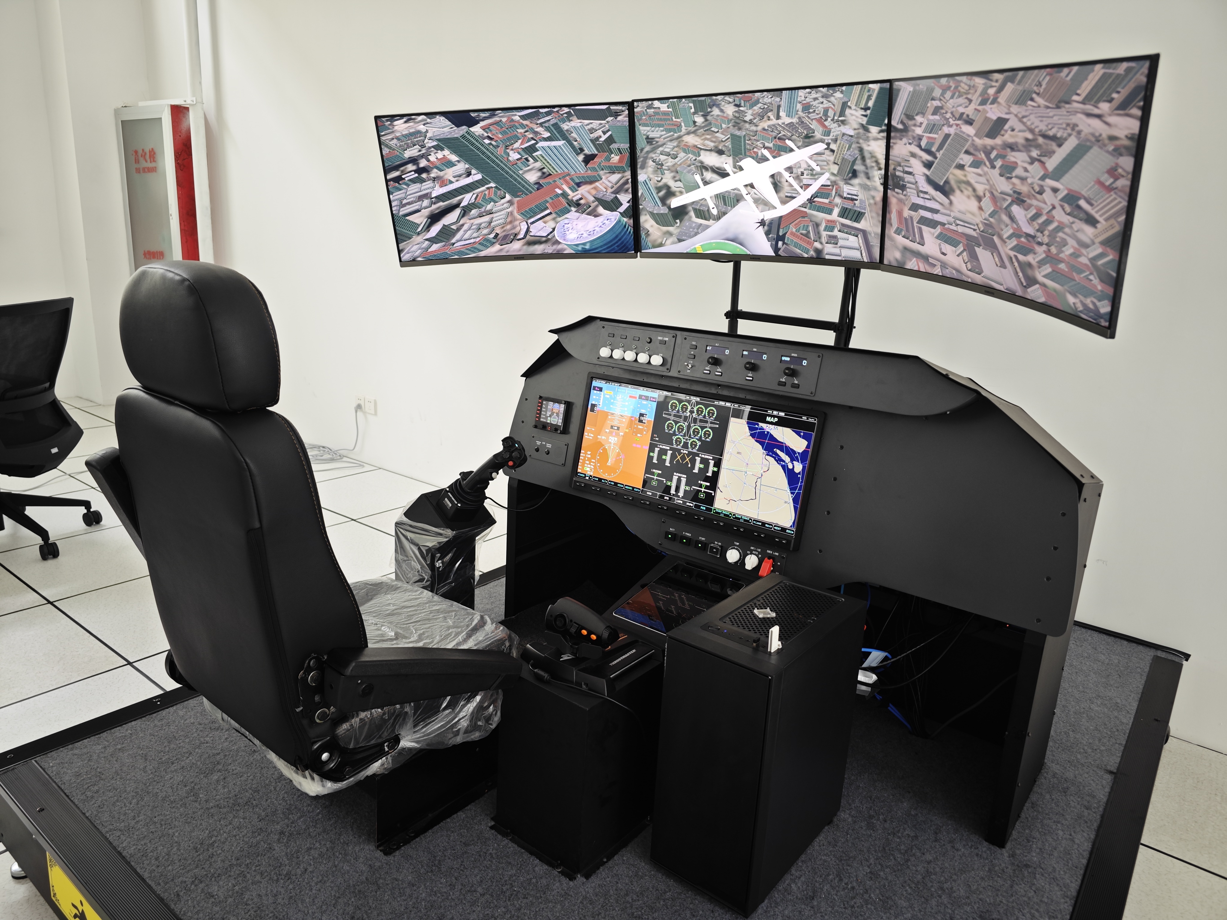 2、eVTOL駕駛艙模擬器:1:1 仿真復(fù)合翼eVTOL飛行器座艙,集成了先進(jìn)的大屏幕儀表系統(tǒng)和多種真實(shí)機(jī)載航電設(shè)備,可接入增強(qiáng)視景系統(tǒng),可加載飛行器空控制律,設(shè)計(jì)有教員管理軟件。真實(shí)的儀表反饋與外部視景,可配置不同的操作方式用于飛行員評(píng)估與飛行培訓(xùn)。